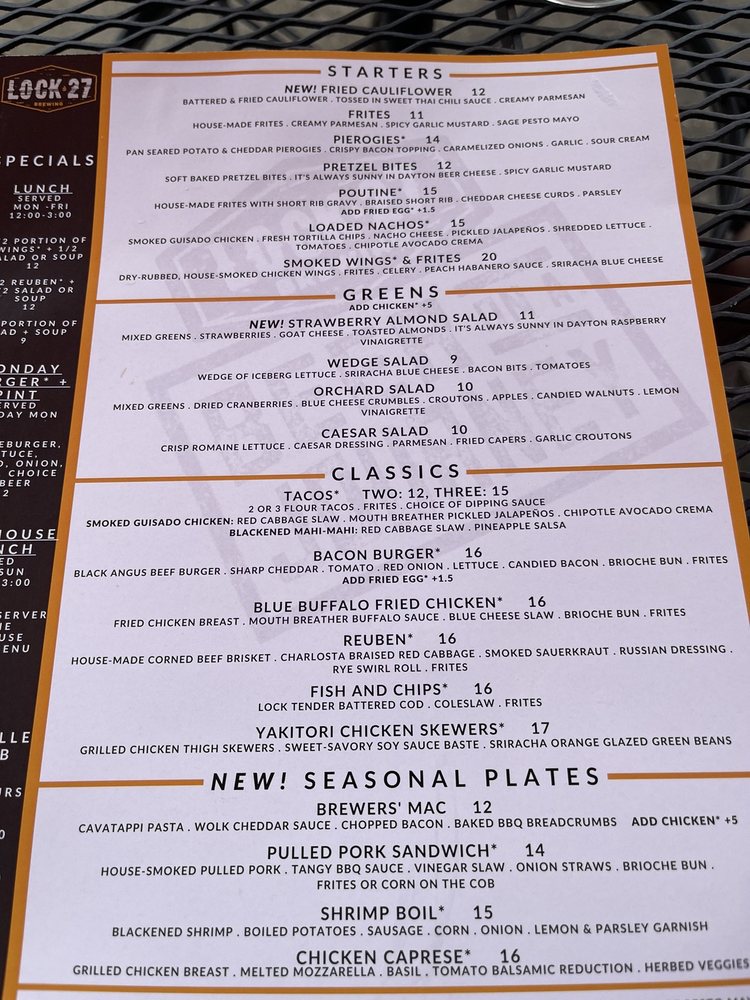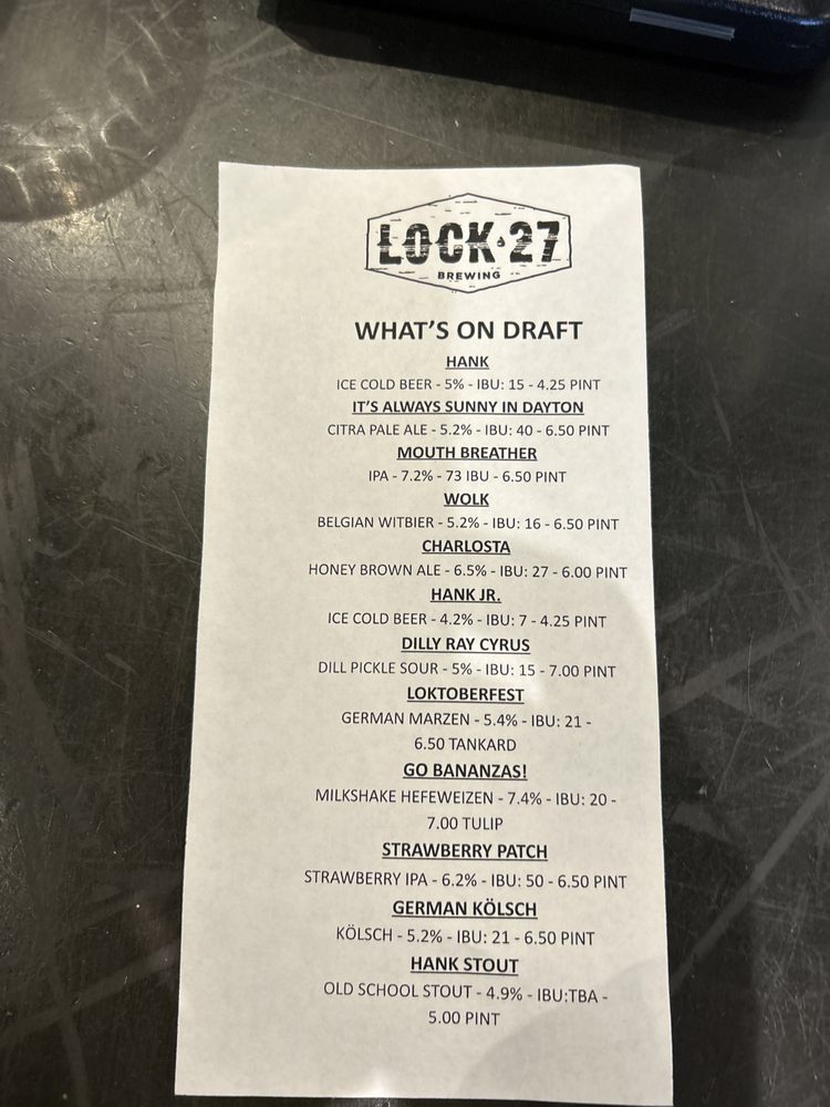 Lock 27 Brewing Restaurant in Centerville, Ohio, offers a trendy and casual dining experience with a diverse menu that caters to different dietary preferences. The restaurant provides a range of utilities, from takeout and delivery options to live music and cozy outdoor seating. Customers rave about the flavorful dishes, with favorites like the fried cauliflower, beet salad with garlicky Parmesan dressing, and the 27 Patty Melt. The restaurant is known for its delicious brews, with options like the Always Sunny in Dayton and Fruit Hole sour ale receiving high praise. Visitors appreciate the laid-back atmosphere and friendly service, making it a great spot for gatherings with friends or family. Whether you're looking for a relaxing meal or a night out, Lock 27 Brewing Restaurant offers a unique dining experience worth trying out.
